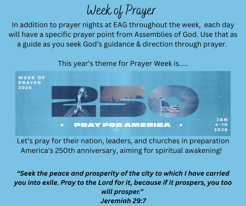 As the United States prepares to celebrate its 250th anniversary, AG General Superintendent Doug Clay has announced that the Assemblies of God Week of Prayer, observed annually during the first week of January, will focus on praying for America.